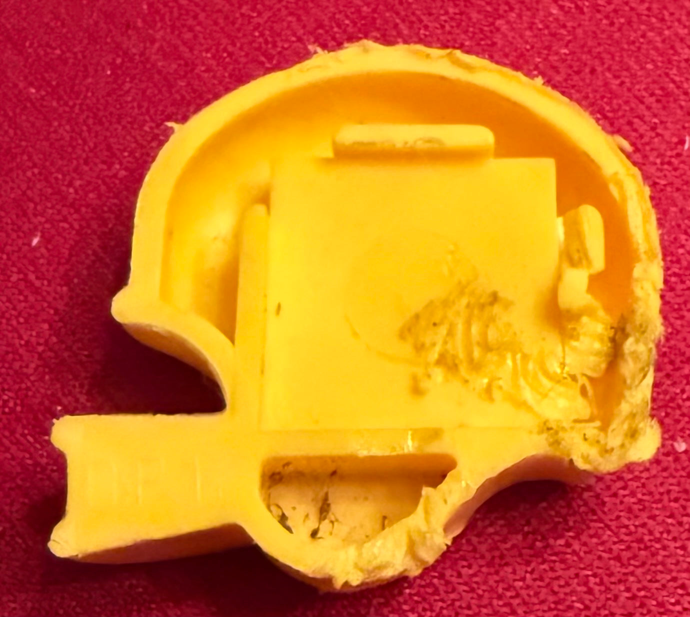 It is from the NFL Standings magnet board. The magnet is missing and there are scrapes in the plastic the on the side and bottom of the helmet. condition is fair.